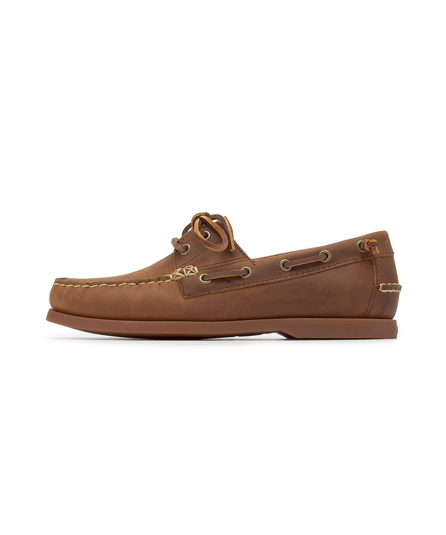 マートンカラーブロックレザーボートシューズ - ブラウン