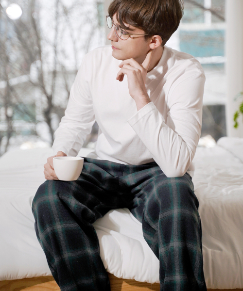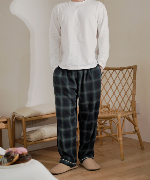 男性用ハッシュチェックパジャマポケット綿パンツ