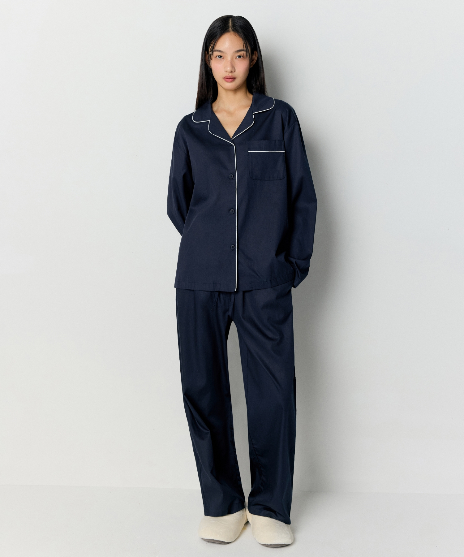 ウーマンズコットンモーダルパジャマセット[ネイビー/ホワイト]