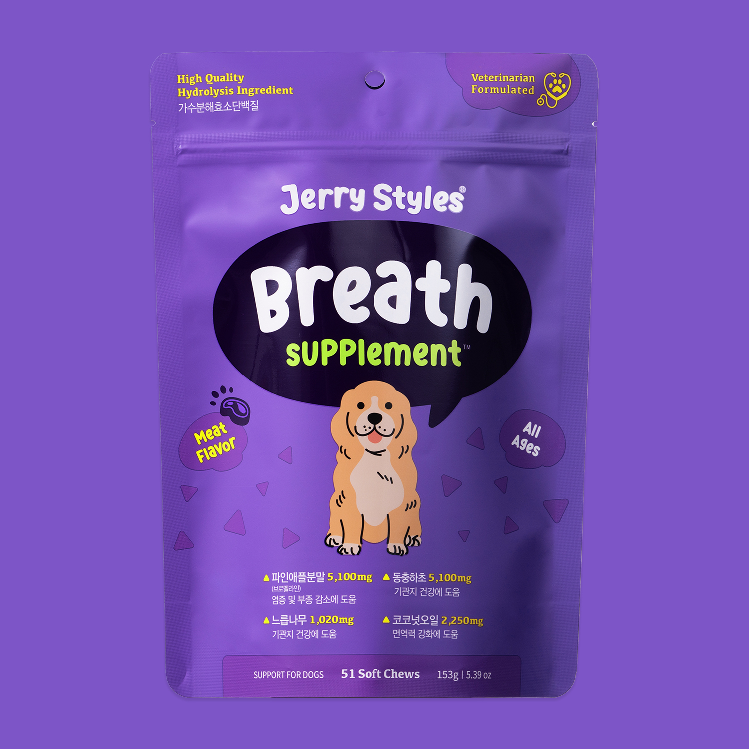 [正規品] ジェリースタイル ブレスポーチ子犬呼吸器栄養素153G 51CHEWS [関税込み]