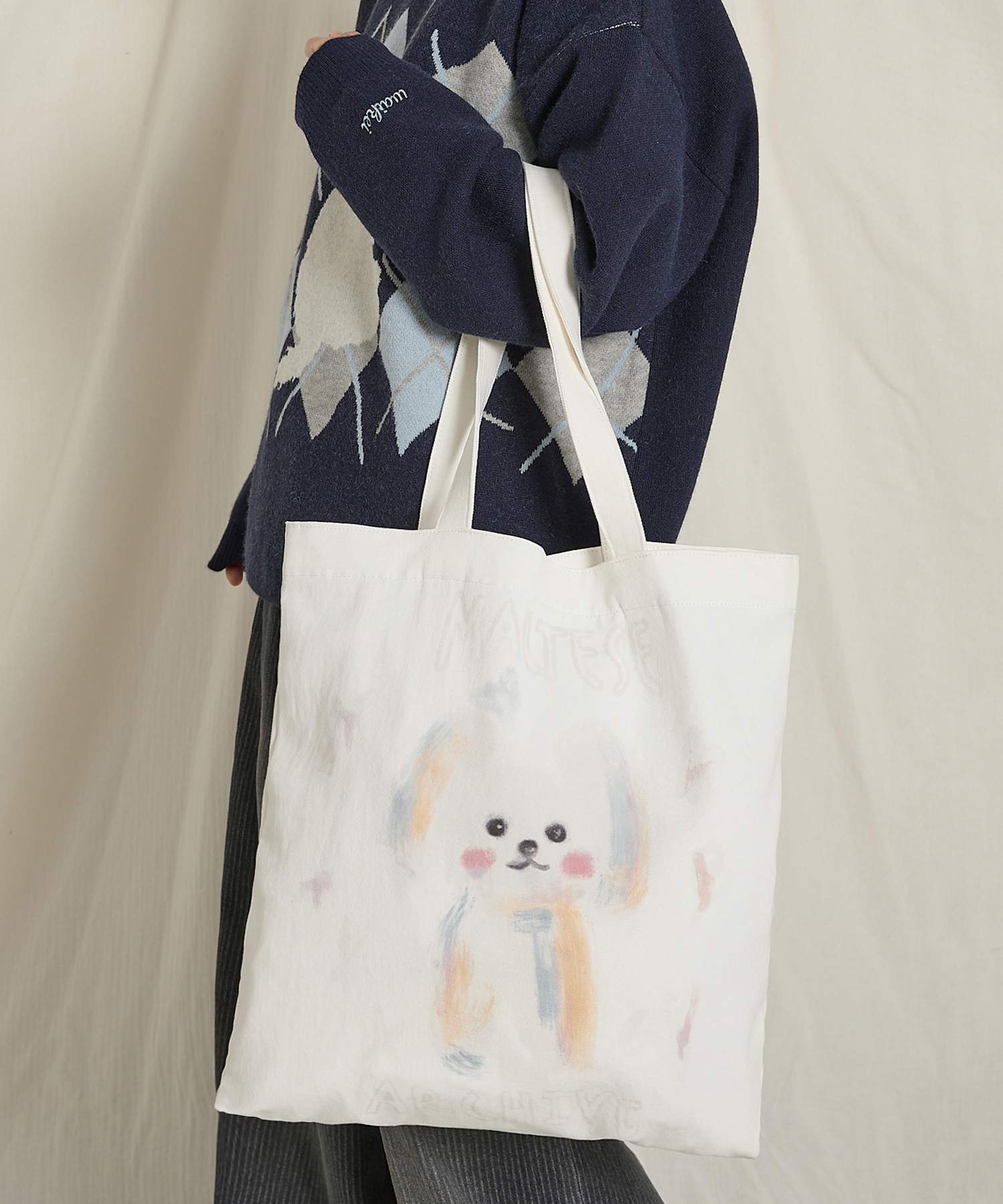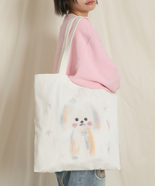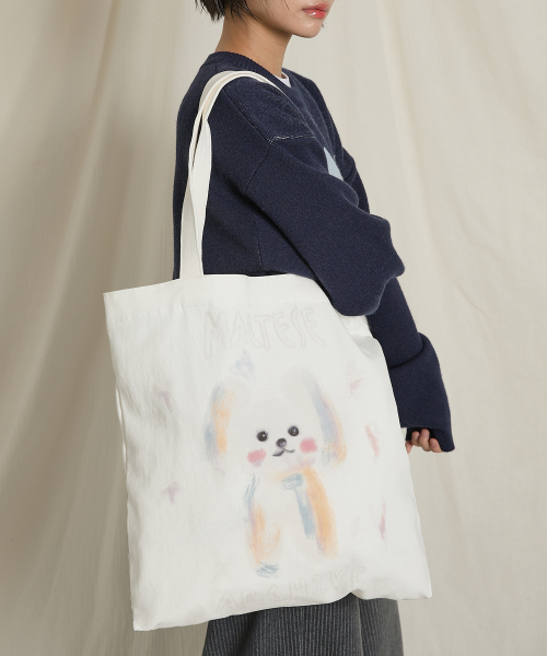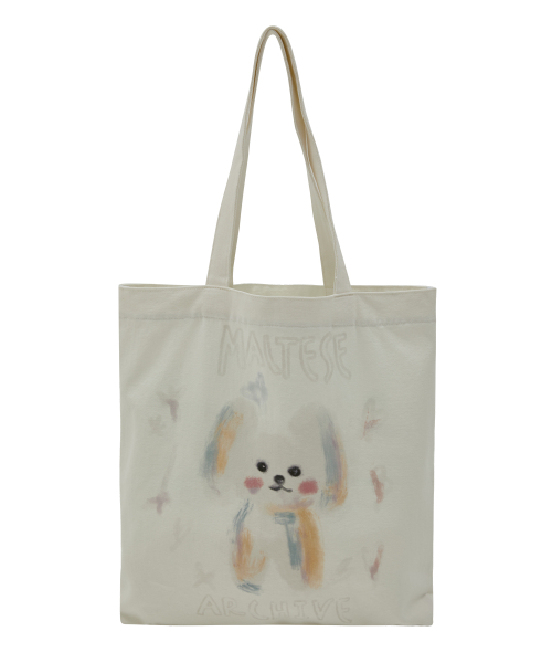 ワイケイオイルペインティングマルチーズエコバッグアイボリー
