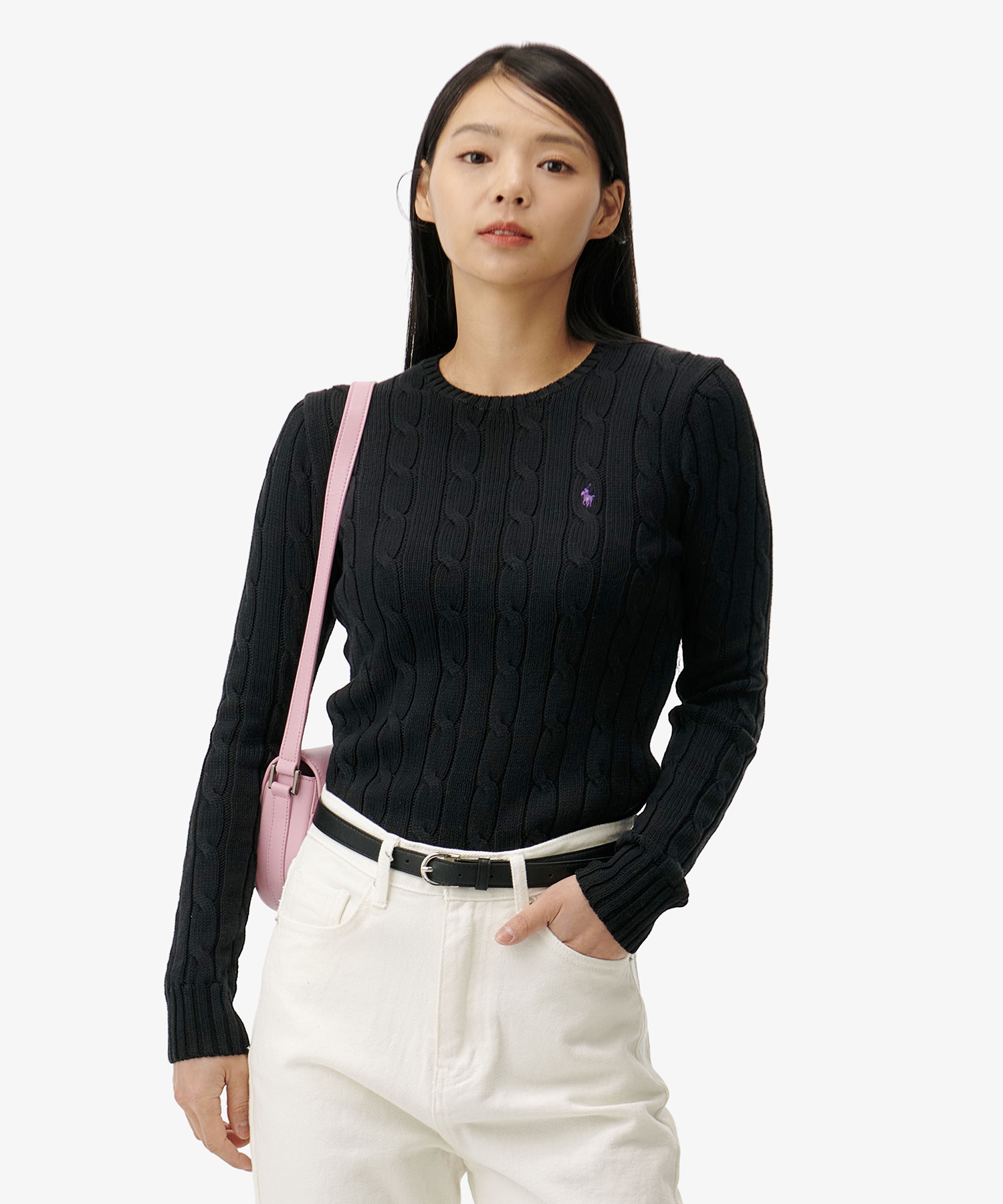 [正規品] Polo Ralph Lauren ケーブルニットコットンクルーネックセーター - ブラック [関税込み]