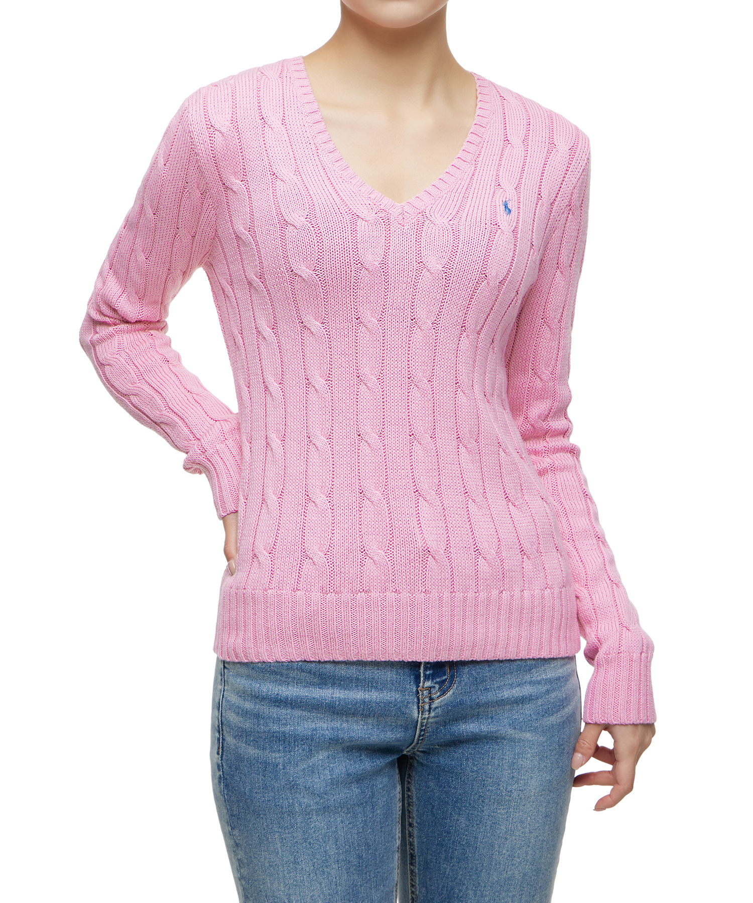 [正規品] Polo Ralph Lauren ケーブルニットコットンVネックセーター - ピンク [関税込み]
