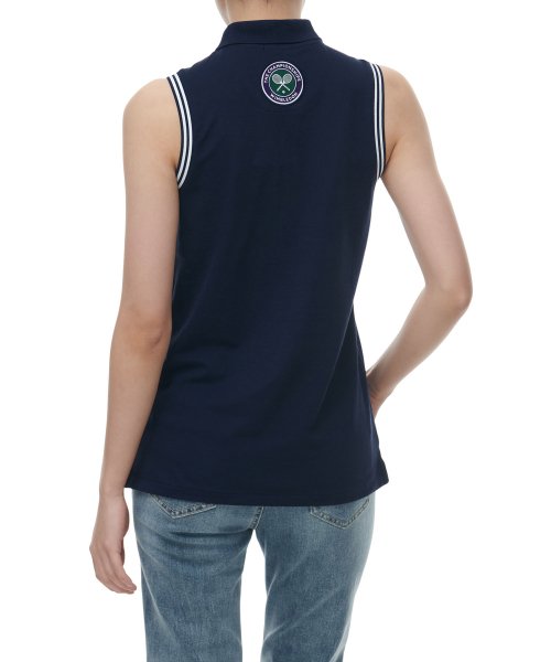 2022年ウィンブルドン大会を記念するコレクションアイテムであるスリーブレスポロシャツで、通気性と吸湿性のあるピケ素材で製作され、アームバンドの先染処理ストライプが特徴です。チェストにシグネチャーポニー刺繍、首裏側中央にウィンブルドンの公式ロゴパッチ、アンダーカラーにWimbledonプリントロゴでスタイルを仕上げました。
