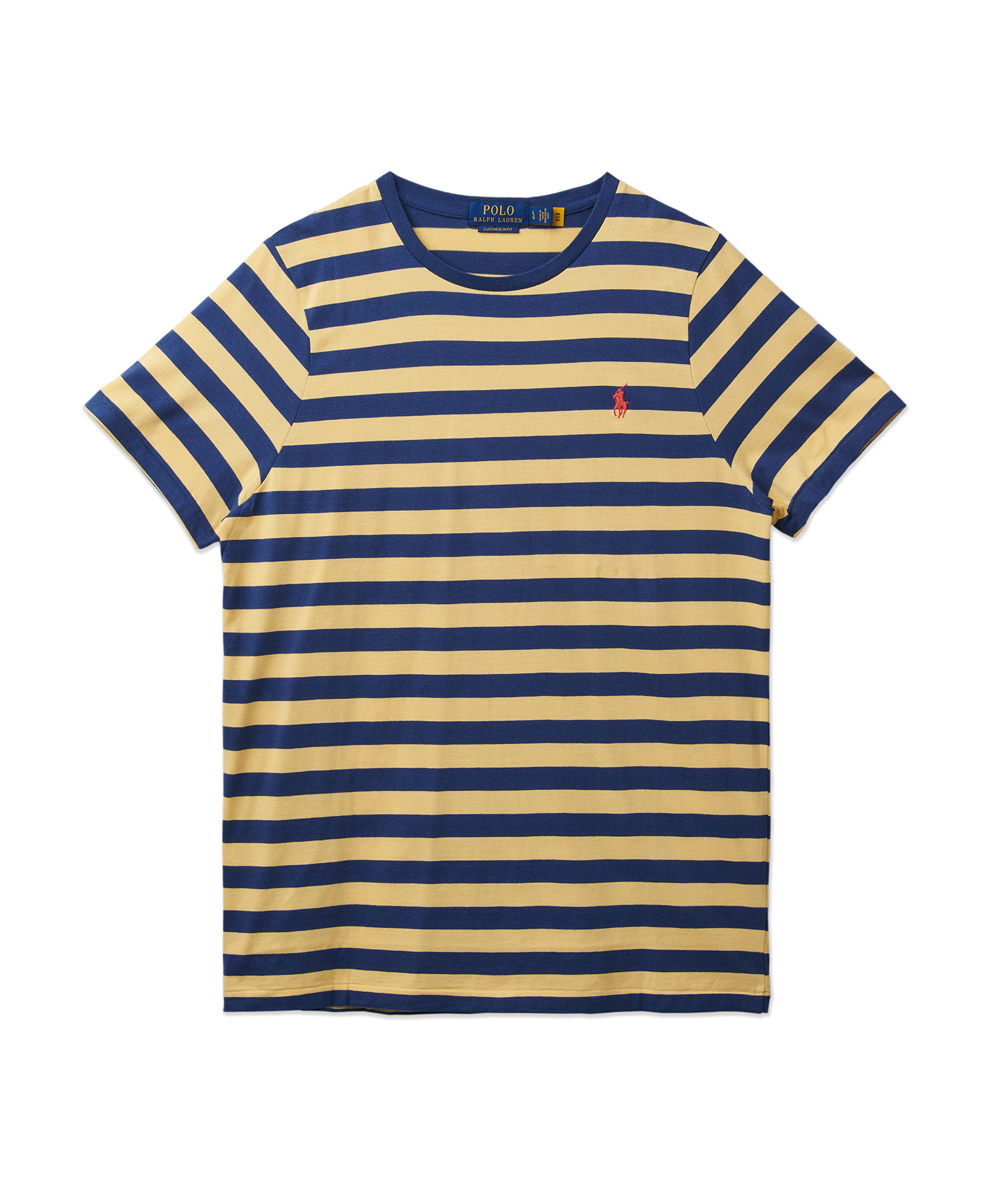 [正規品] POLO RALPH LAUREN カスタムスリムフィットストライプジャージーTシャツ - イエロー MNPOTSH1N821209-700 [関税込み]