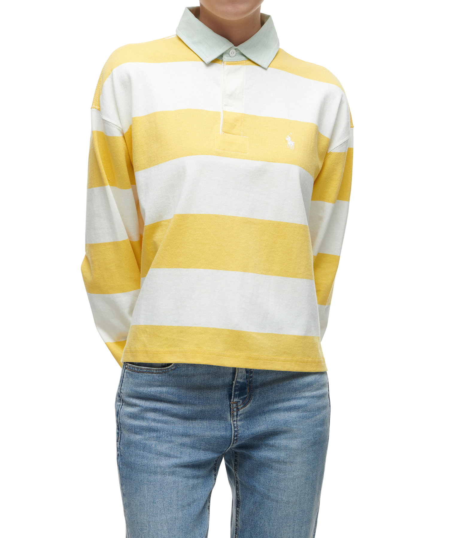 [正規品] POLO RALPH LAUREN ストライプクロップジャージーラグビーシャツ - イエロー WMPOKNIN1J20005-700 [関税込み]