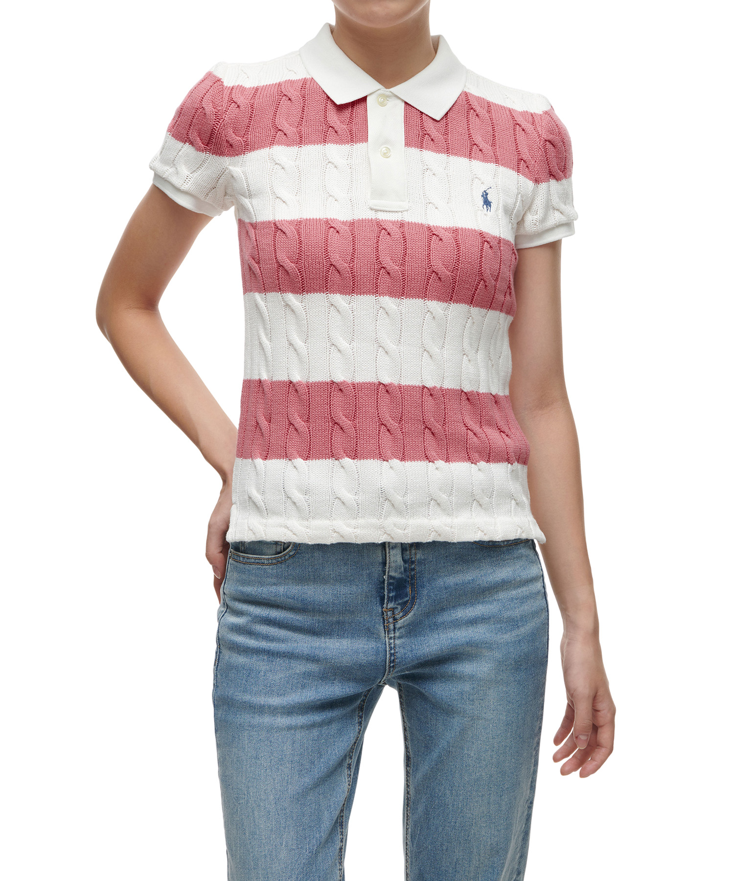 [正規品] POLO RALPH LAUREN ストライプケーブルニットポロシャツ - ピンク WMPOKNINCU20531-650 [関税込み]