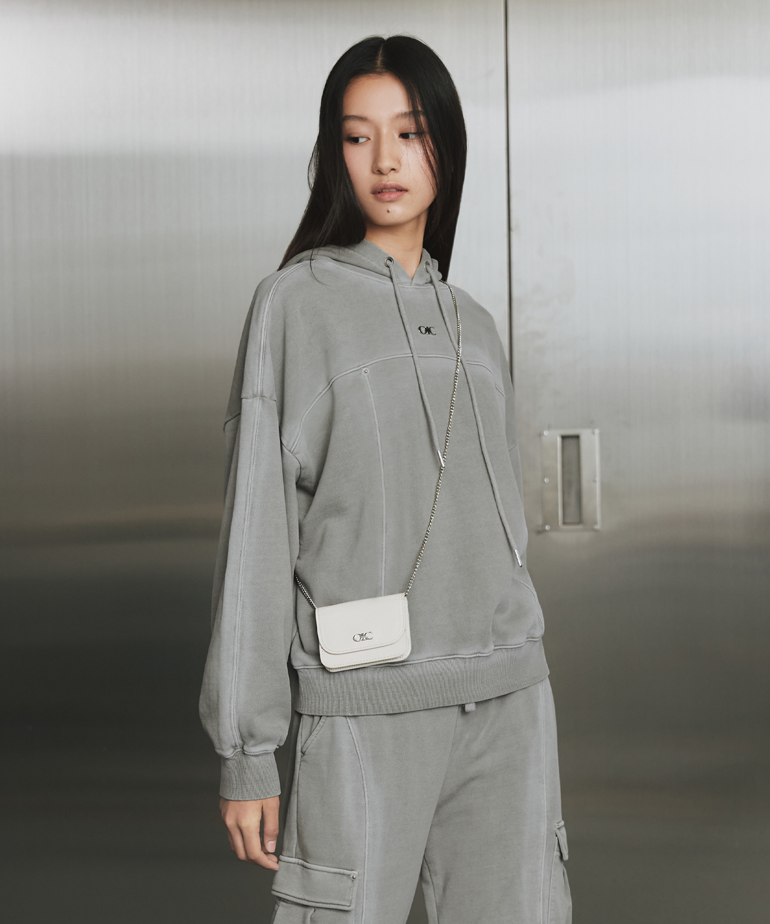 [正規品] 오아이오아이 컬렉션 オアイオアイコレクション(OIOI COLLECTION) メタルエンブレムレザーチェーンウォレット [IVORY] [関税込み]