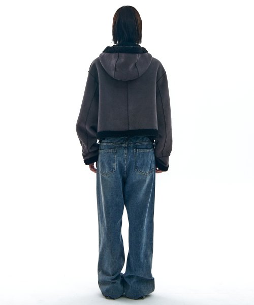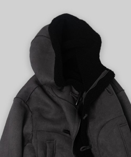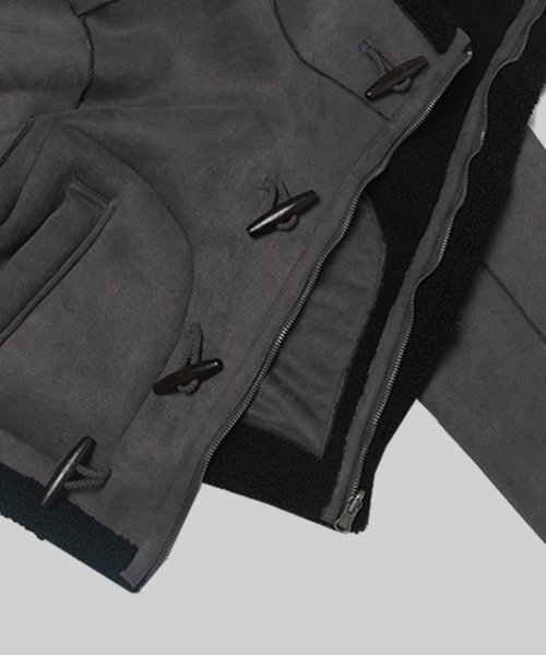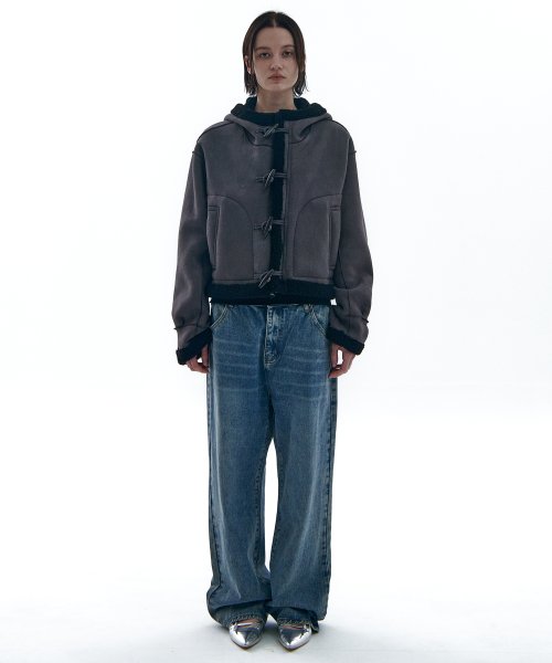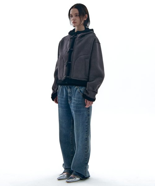 リバーシブルスエードフードクロップダッフルコートジップジャケット3COLOR