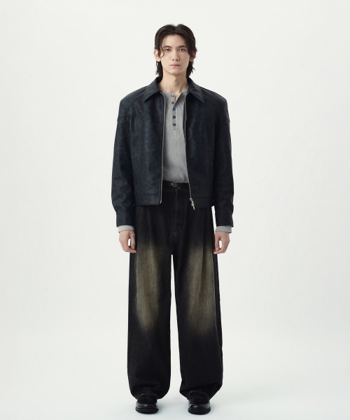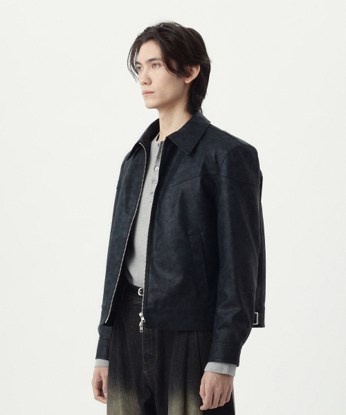 ヴィンテージレザーカラージャケット_BLACK