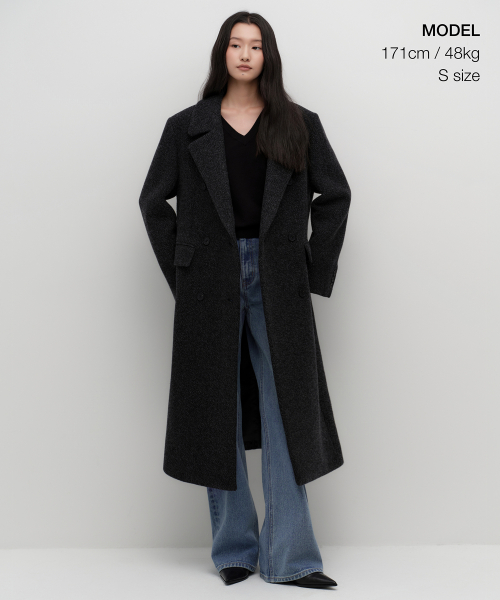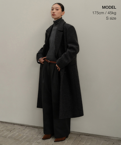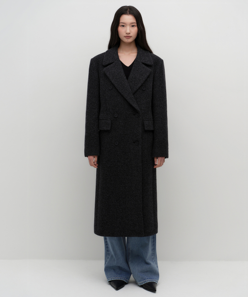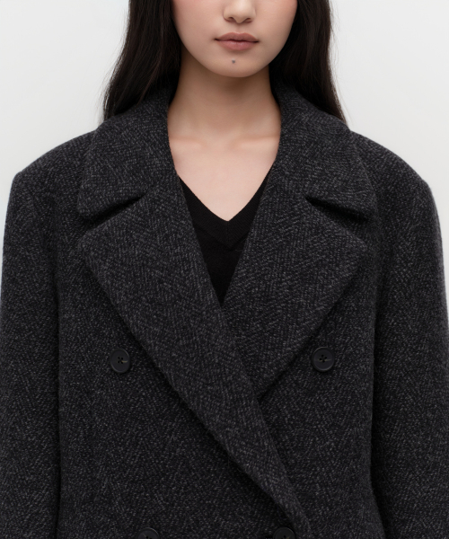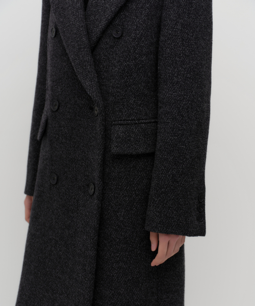 [正規品] 無神社スタンダードウーマン ウーマンズウールブレンドヘリンボーンオーバーショルダーダブルマキシコート[チャコールグレー] MWECT9D41-CG