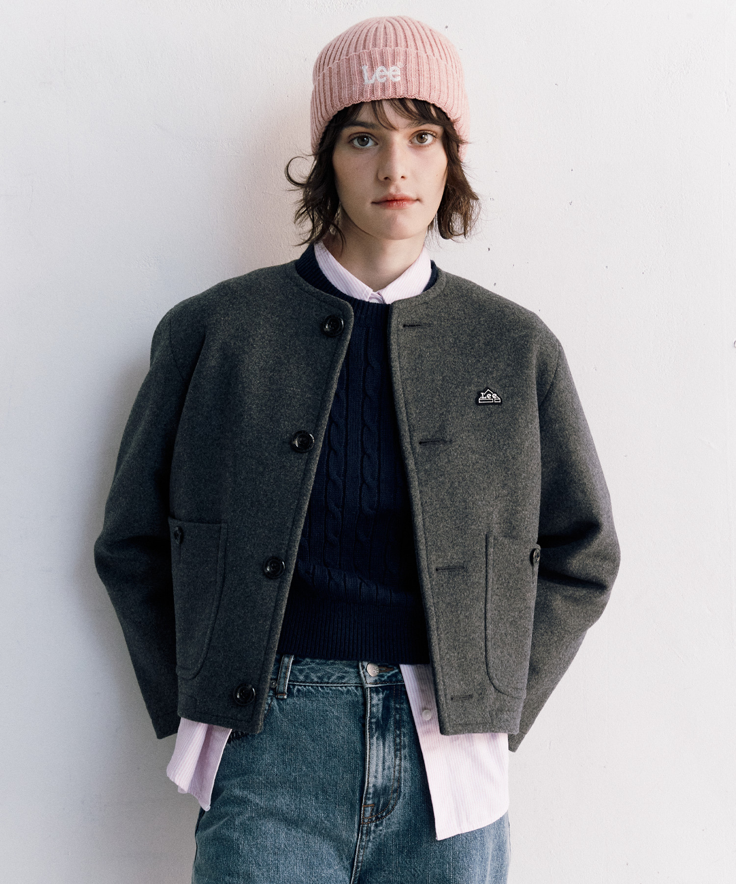 [正規品] リー ウーマンウール混紡ラウンドネックショートコートチャコール LE2304CT60CH [関税込み]