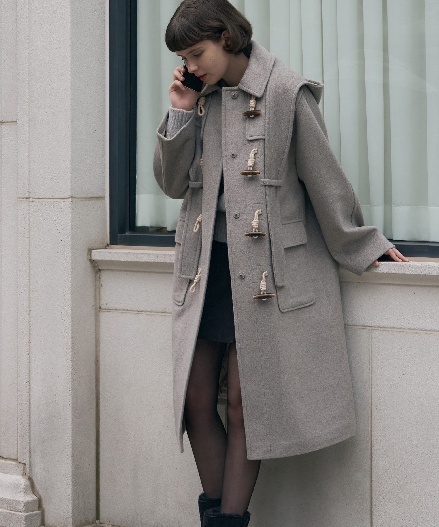 ソフトカシミアフードスカーフダッフルコート [M.GREY]