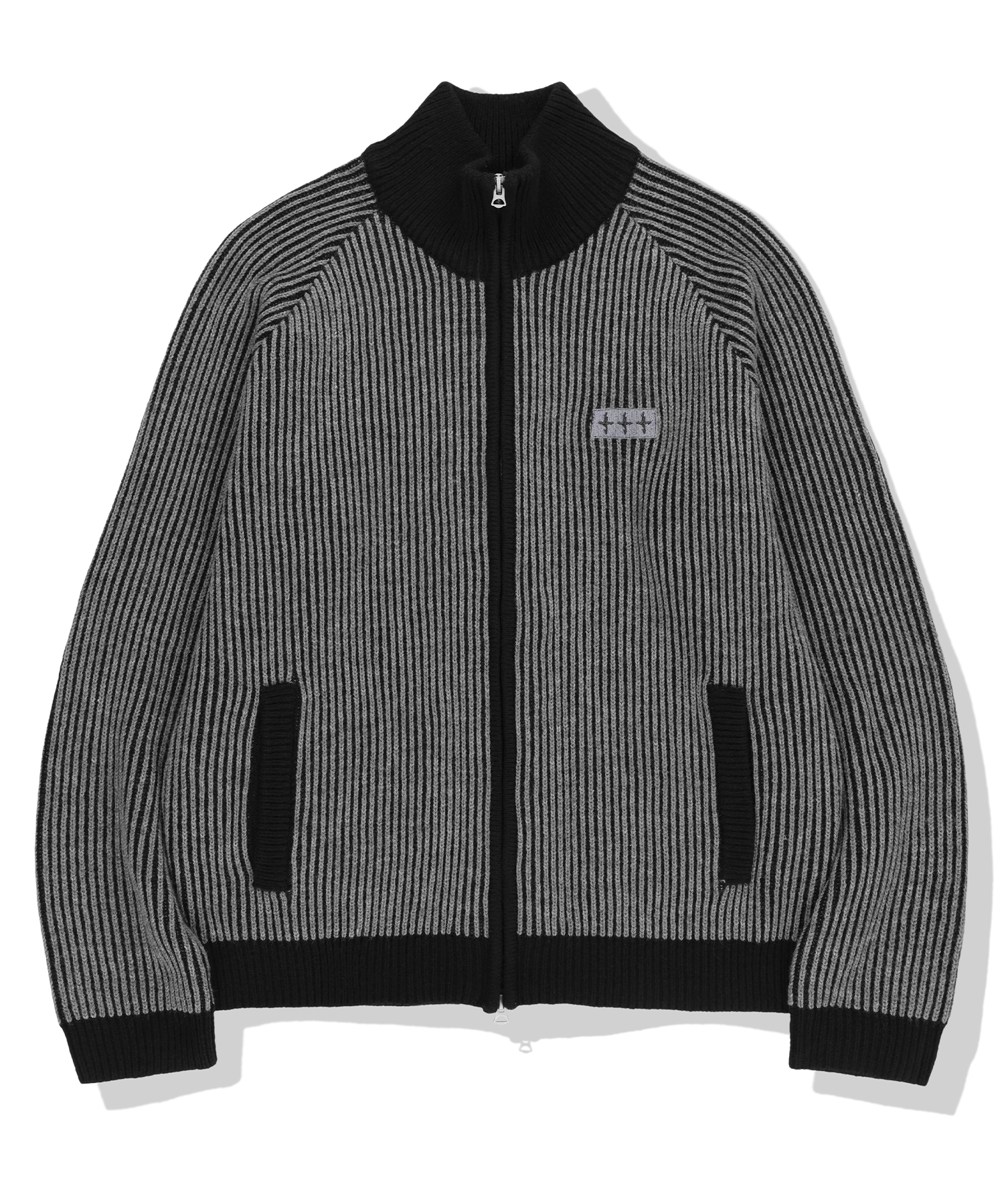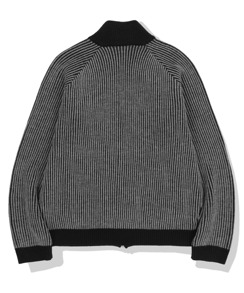 444 Logo Two Tone Rib Knit Zip Up - Charcoal