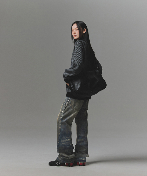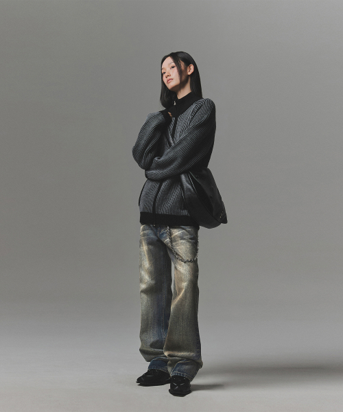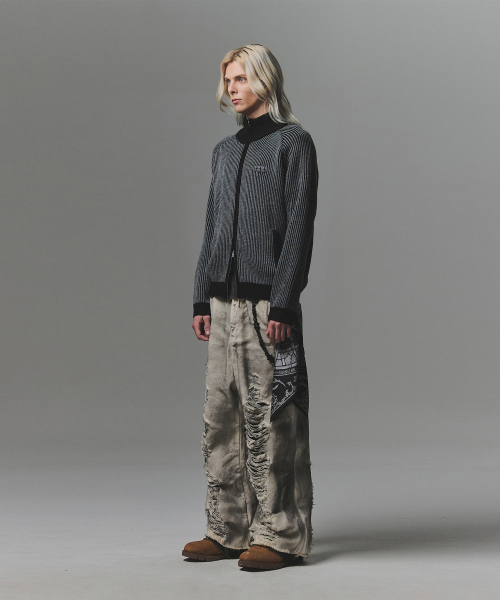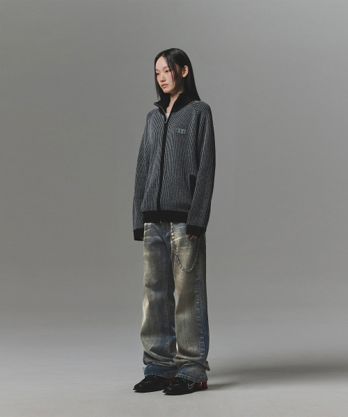 [正規品] ナットフォナード 444 LOGO TWO TONE RIB KNIT ZIP UP - CHARCOAL J3NT07GCH [関税込み]