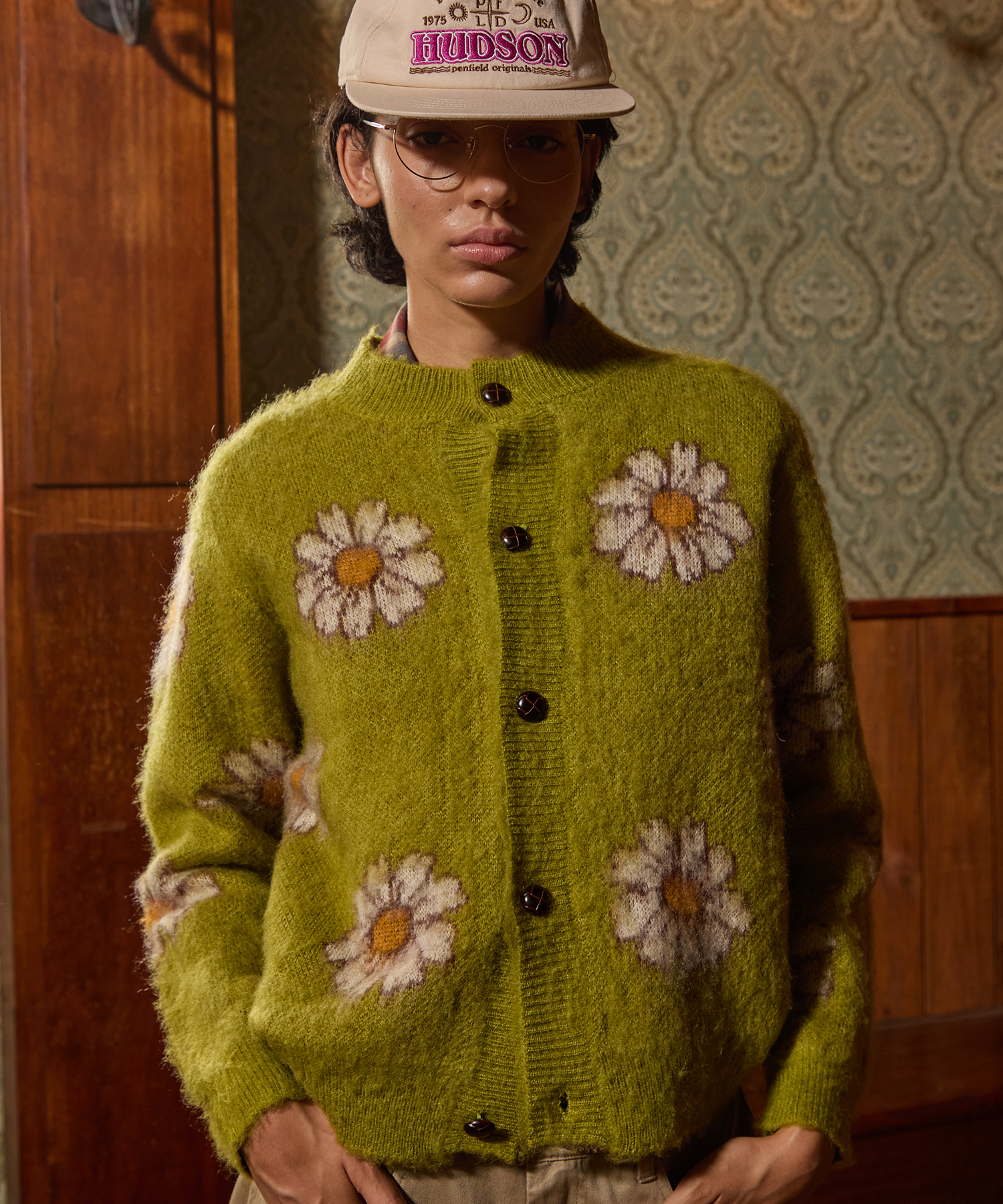 [正規品] ペンフィールド モヘアブラシ花柄ロングスリーブカーディガングリーン_FR3KJ27U FR3KJ27U [関税込み]