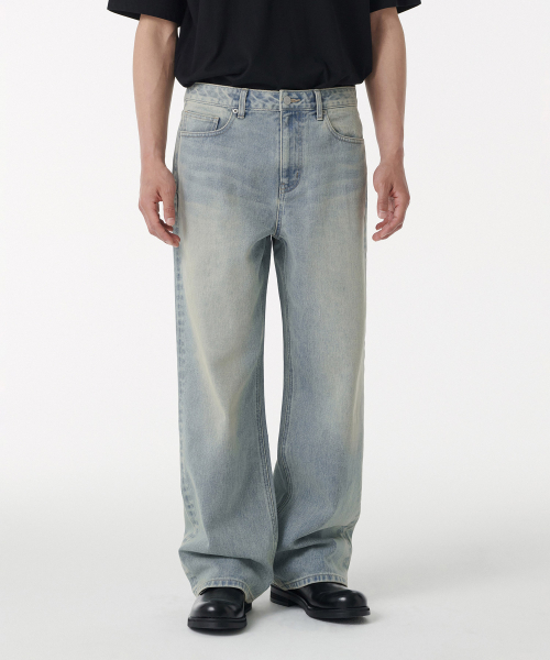 [正規品] 無神社スタンダード ビッグブラシワイドデニムパンツ【イエロースカイブルー】 MMDNP407-WY [関税込み]