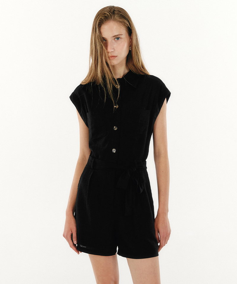 [正規品] マリクレル リネンアウトポケットショートジャンプスーツ(MAFBOP15MBK) MAFBOP15MBK [関税込み]