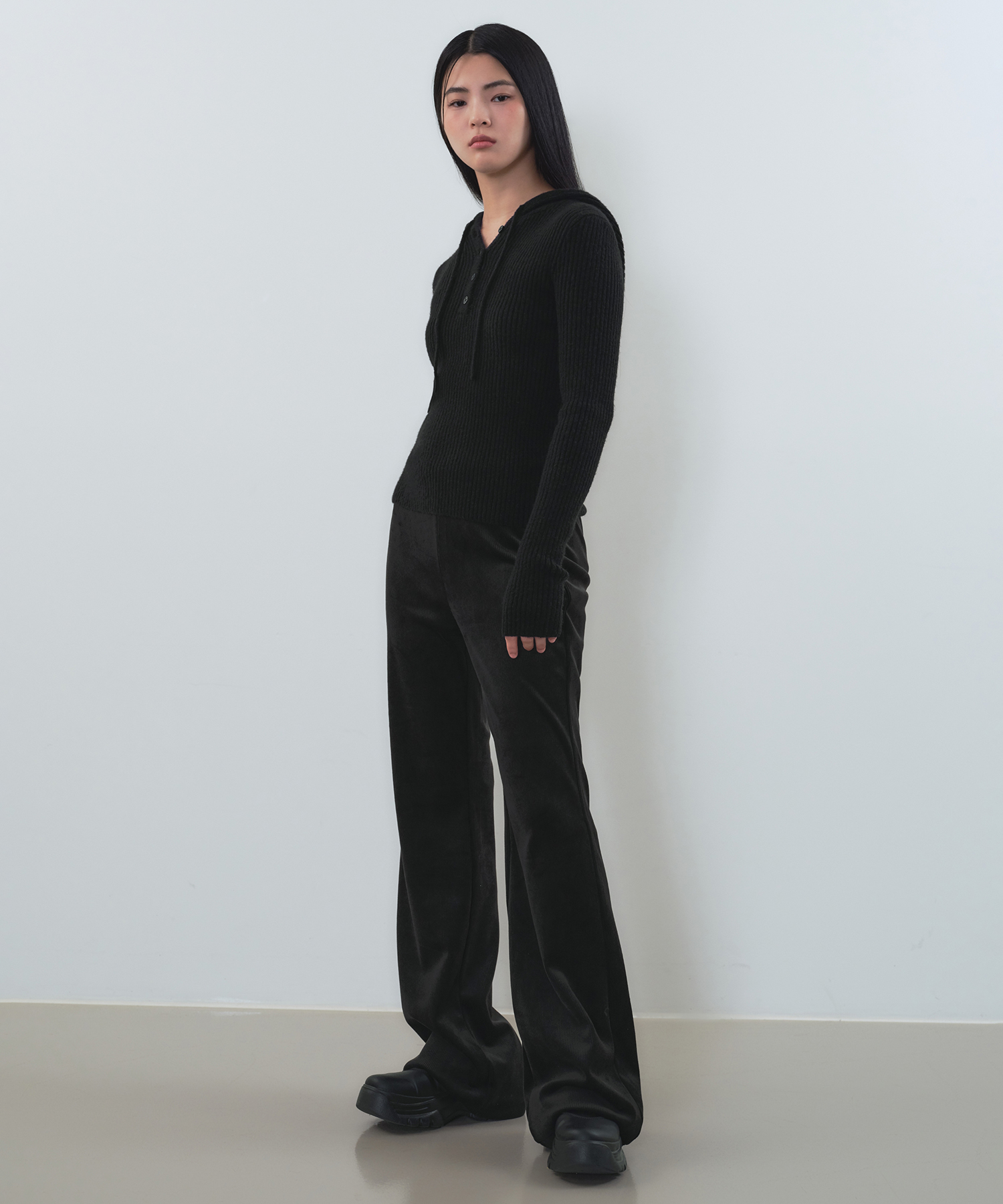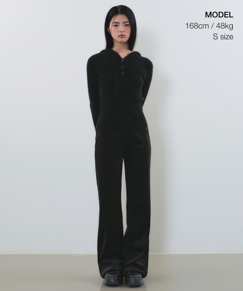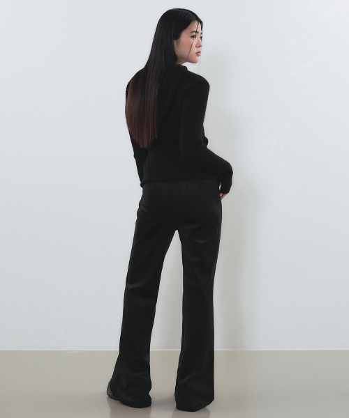 ウーマンズベロアコーデュロイフレアバンディングパンツ[ブラック]