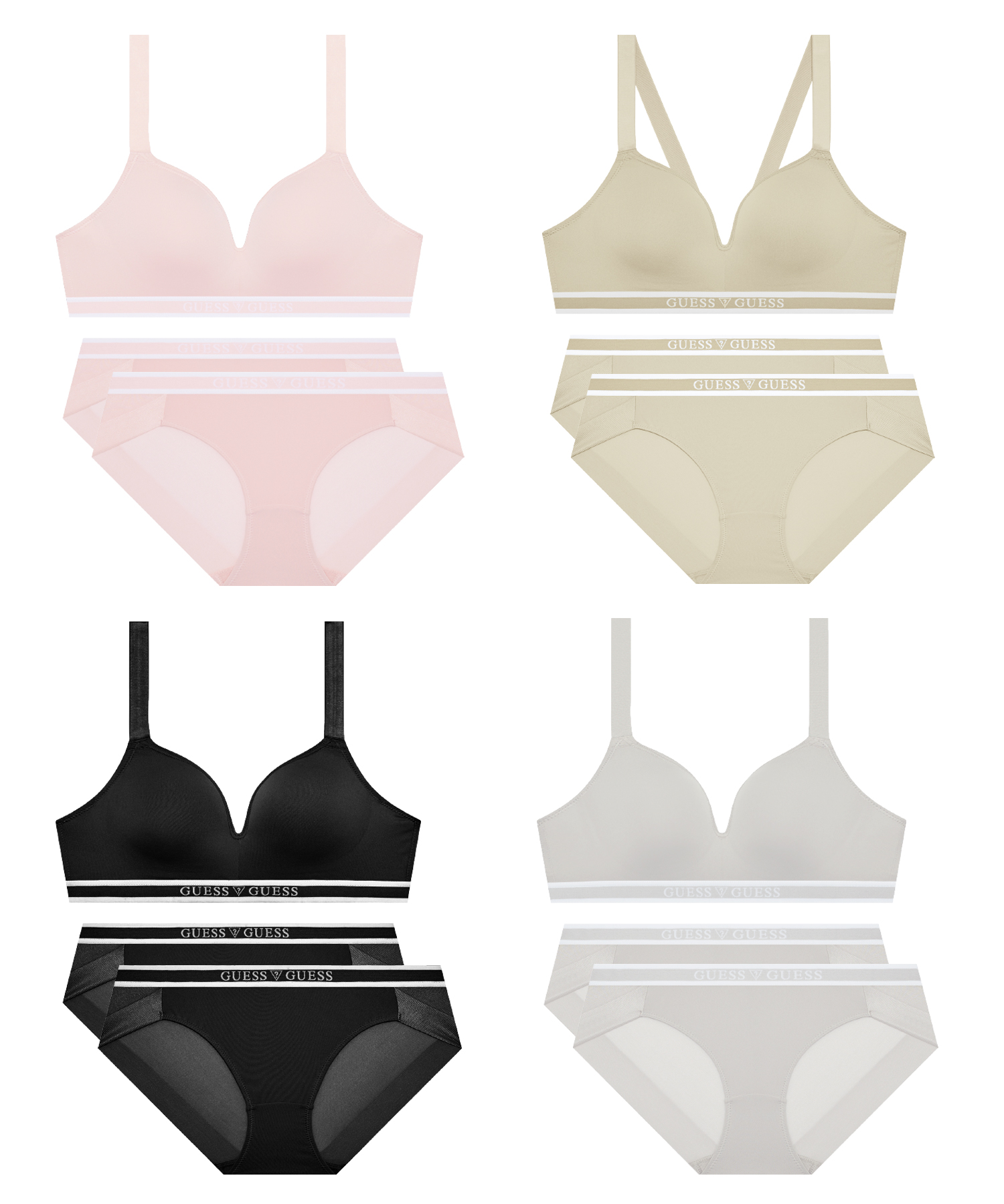 [正規品] ゲスアンダーウェア [ブラ1+パンティー2]エアロクールロゴアウトバンドノワイヤーブラパンティーセット [関税込み]
