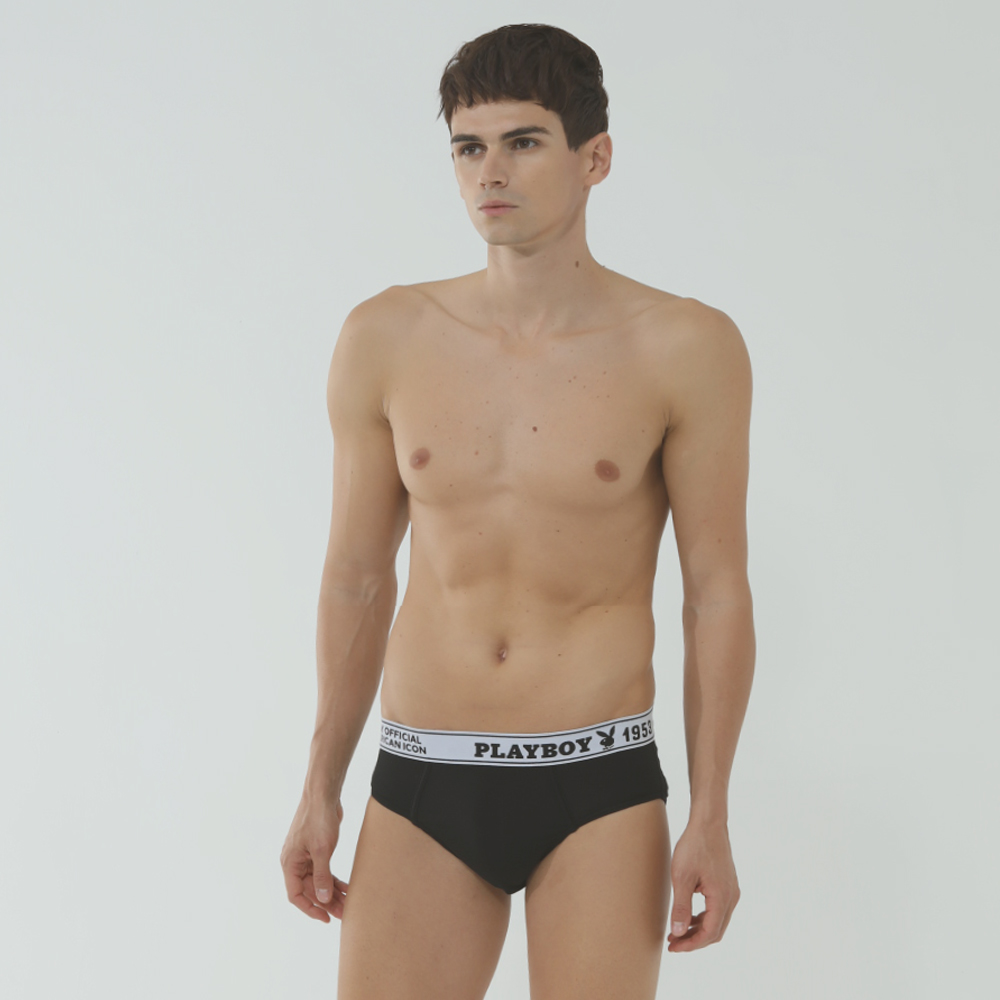 [正規品] プレイボーイ メンズラインロゴブリーフ1枚入りブラック/ホワイトPMB3101-BKWH [関税込み]